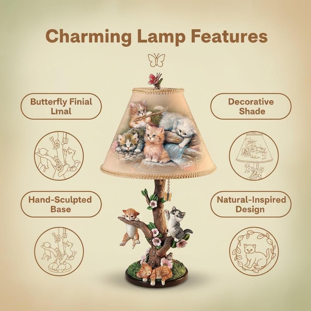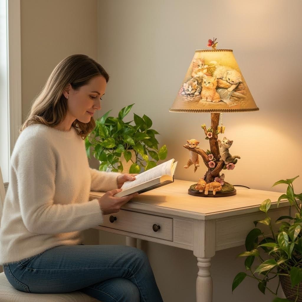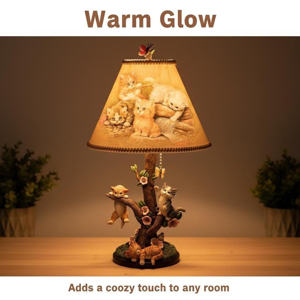 Bring warmth, charm, and a touch of countryside magic to your home with this beautiful kitten-themed accent table lamp. Featuring adorable kittens playing around a sculpted tree base and a detailed illustrated lampshade, this decorative lamp is both a functional light source and a delightful piece of home décor. Perfect for cat lovers, collectors, and anyone who enjoys cozy, nature-inspired design. 🌿✨